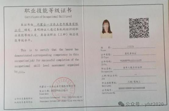 考核通过的学员将获得人社部门备案认可的老年人能力评估师职业技能等级证书,该证书全国通用、终身有效、联网可查。