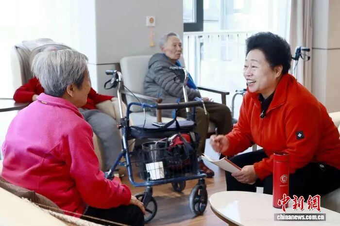2025年1月,卓长立(右)走进社区和养老机构调研,了解老年人所想所需。 (受访者供图)