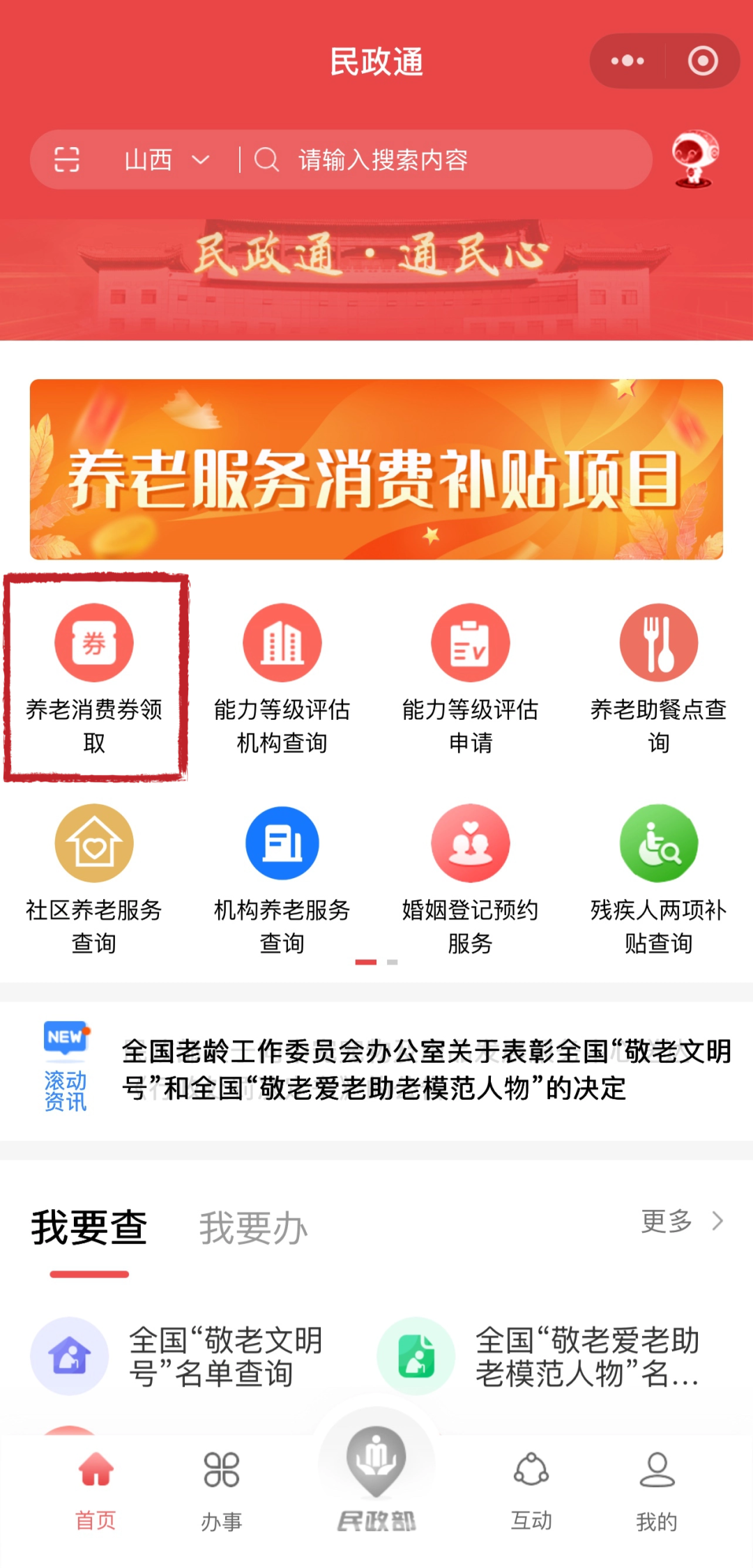 找到养老消费券领取入口
